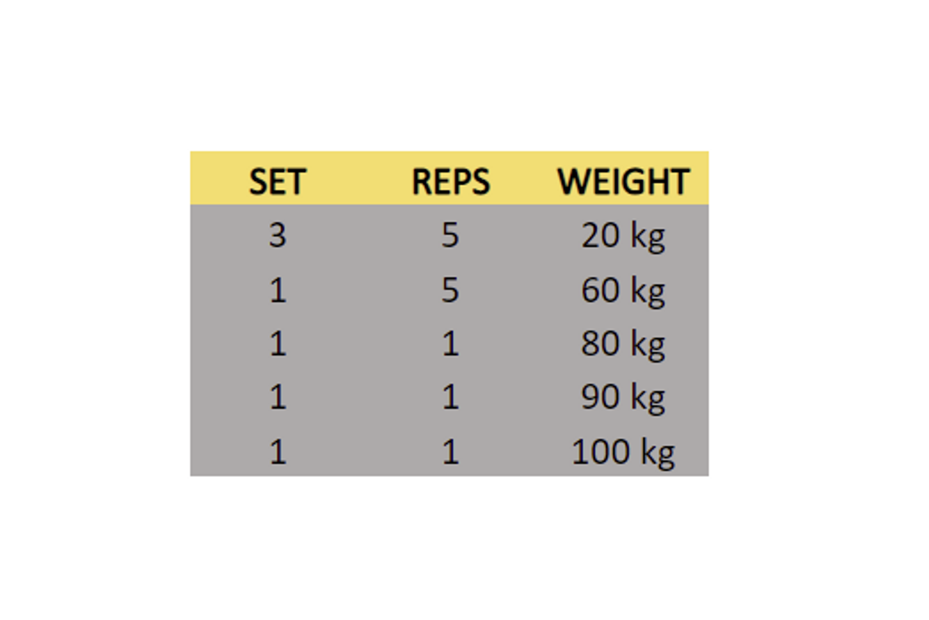 Imagine you want to squat 100 kg for a single rep. First, one starts with just the bar and squats a few sets to get things moving. Then in a few increments, we move closer to the weight we want to do the single at, reducing the reps as we increase the intensity. An example of this can be seen above. This strategy is possible for pretty much any performance event, though sometimes the total load is so low that no warmup is needed at all.